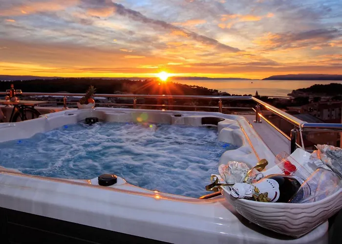 To enjoy your vacation in Makarska, stay at New Penthouse 150 M2 With Private Jacuzzi, Beautiful Sea, City And Island View Apartment Makarska, which is within 2 km of the Peninsula of St. Peter and within 20 minutes' walk of the Biokovo Mountain.